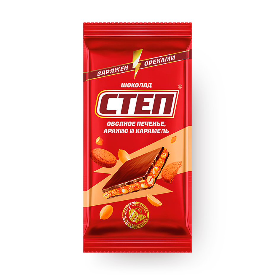 Шоколад молочный «Славянка» «Степ» с овсяным печеньем, арахисом и карамелью