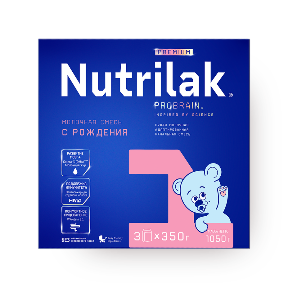 Эта смесь подходит для малышей с первых дней жизни. В ней есть всё необходимое для здорового роста и развития.