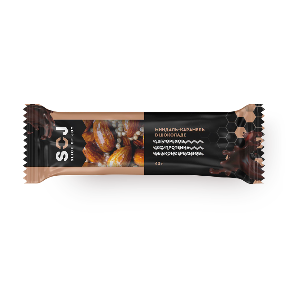Батончик ореховый SOJ в шоколаде миндаль-карамель