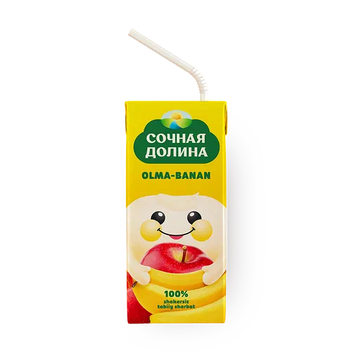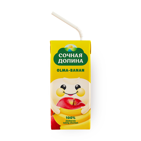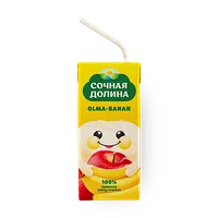 В этом соке сочетаются яблоко и банан, которые придают ему сладкий вкус. Можно пить охлаждённым или добавить в смузи.