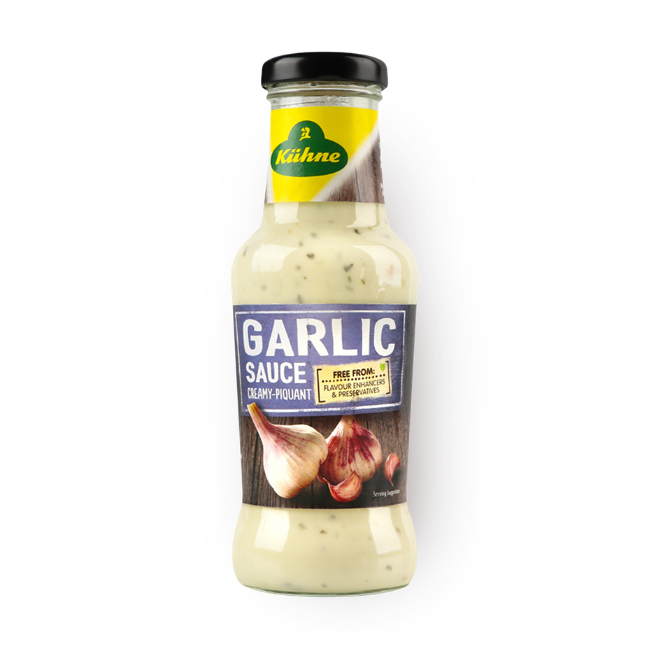 Вода, уксус, сахар, чеснок (8%), соль, загуститель (ксантан), специи, экстракт укропа, консервант (сорбат K).