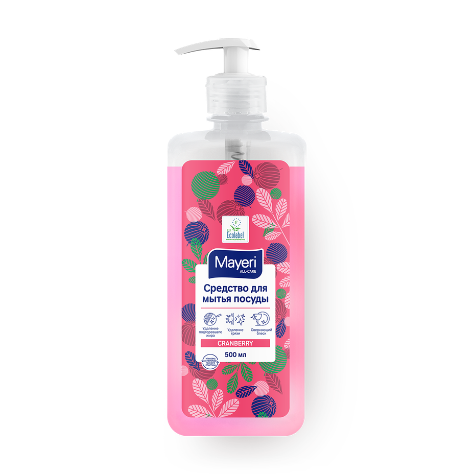 Это средство для мытья посуды с лёгким ароматом клюквы. Оно хорошо справляется с жиром и подходит для ежедневного использования.