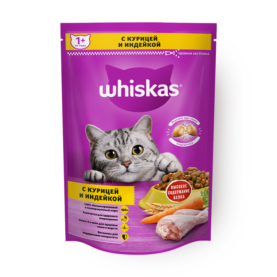 Сухой корм для кошек Whiskas Вкусные подушечки с курицей и индейкой