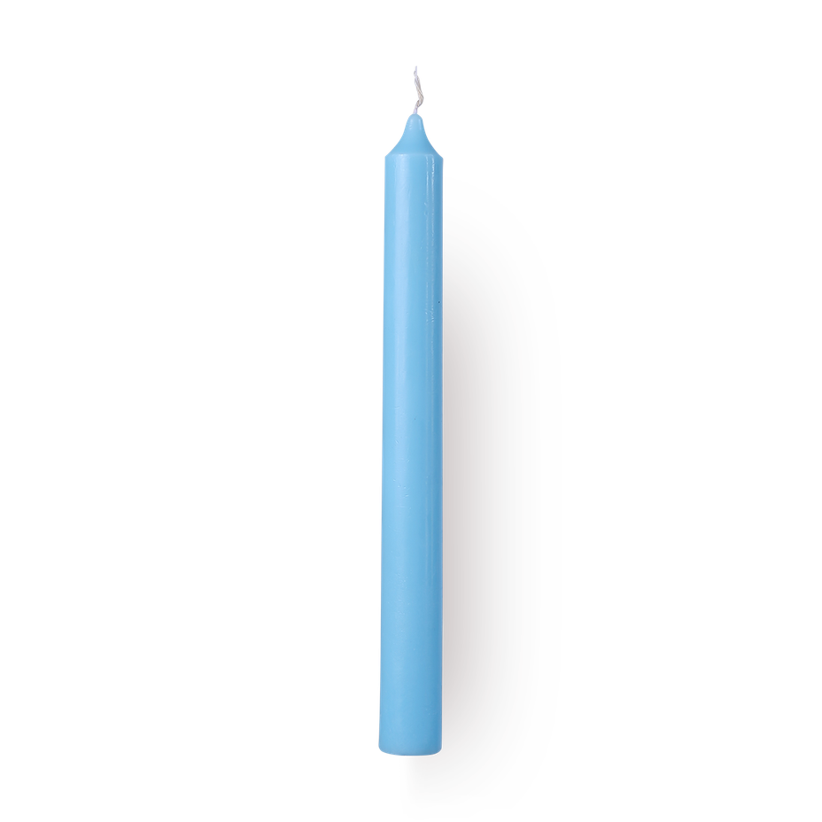 Эта свеча голубого цвета подойдёт для украшения стола или создания уютной атмосферы. Её можно использовать в качестве декоративного элемента или по прямому назначению.