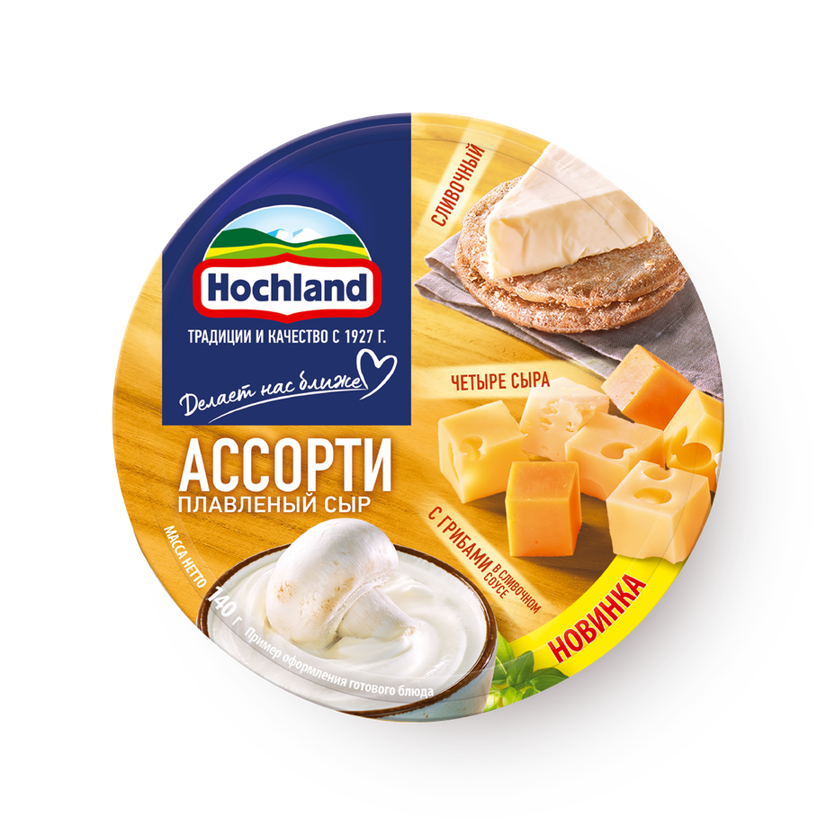 Сыр ассорти плавленый Hochland четыре сыра, сливочный и с грибами 45%