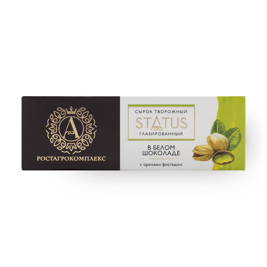 Сырок глазированный STATUS «РостАгроКомплекс» в белом шоколаде с орехом фисташки
