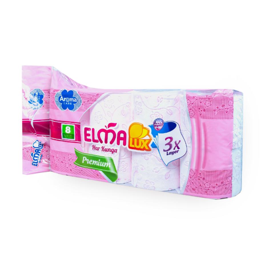 Эта туалетная бумага состоит из трёх слоёв, которые делают её мягкой и прочной. В рулоне 8 штук, которых хватит надолго.