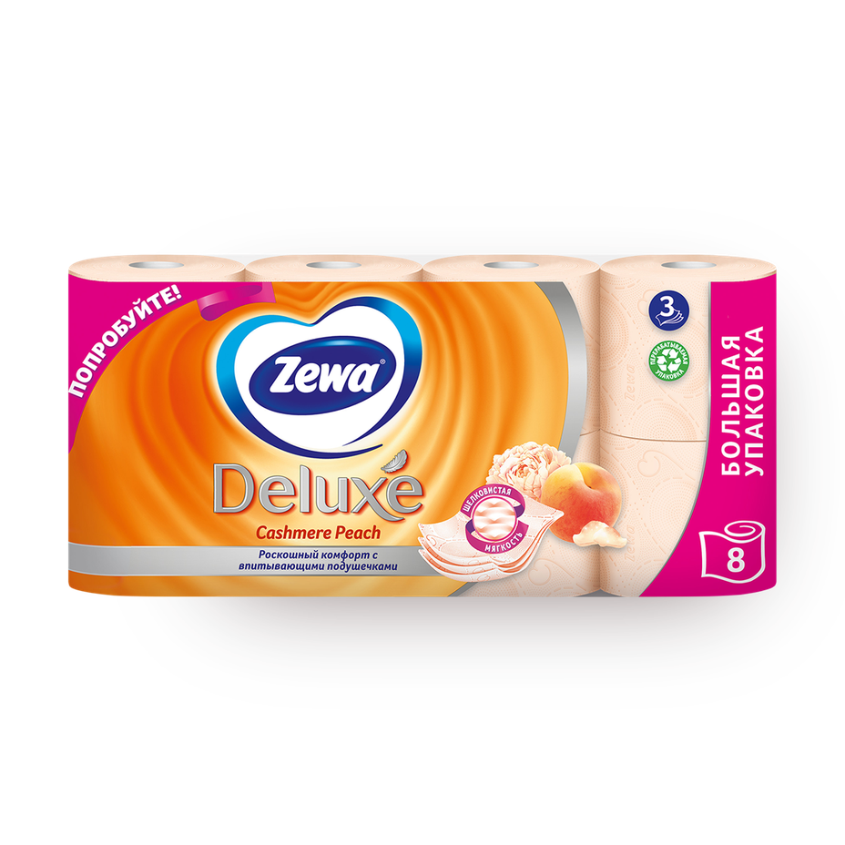 Трёхслойная туалетная бумага с лёгким ароматом персика, который делает использование более приятным. Она мягкая и подходит для ежедневного применения.