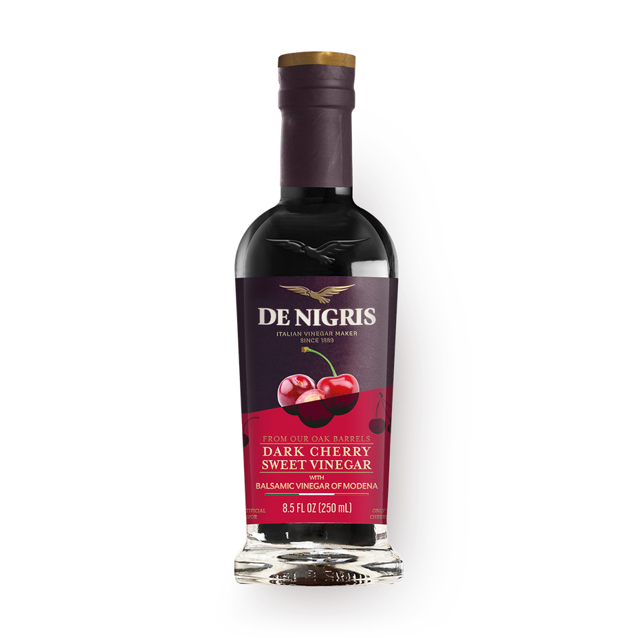 Этот густой бальзамический уксус приготовлен с добавлением вишнёвого сока. Он подойдёт к салатам или мясным блюдам.