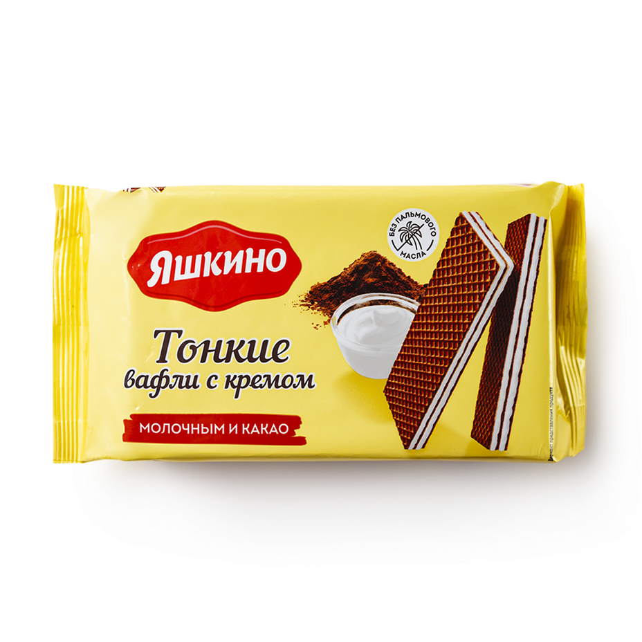 Вафли тонкие «Яшкино» с какао и молочным кремом