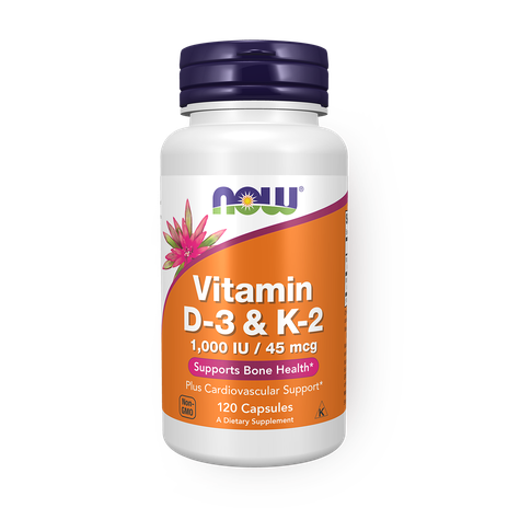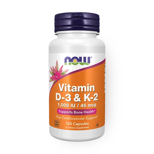 Этот комплекс содержит витамины D3 и K2 в одной капсуле. Он поддерживает здоровье костей и нормальную свёртываемость крови.