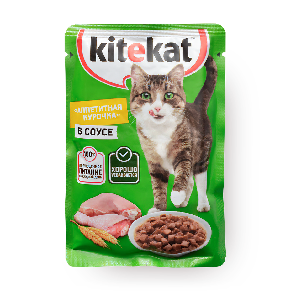 Влажный корм с курицей в соусе, который содержит мясо, субпродукты и злаки. Подходит даже для привередливых кошек.