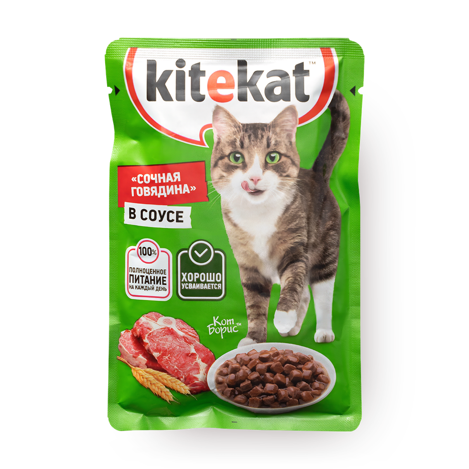 Влажный корм содержит говядину и субпродукты в соусе, который сочетается с злаками. Подходит для взрослых кошек.