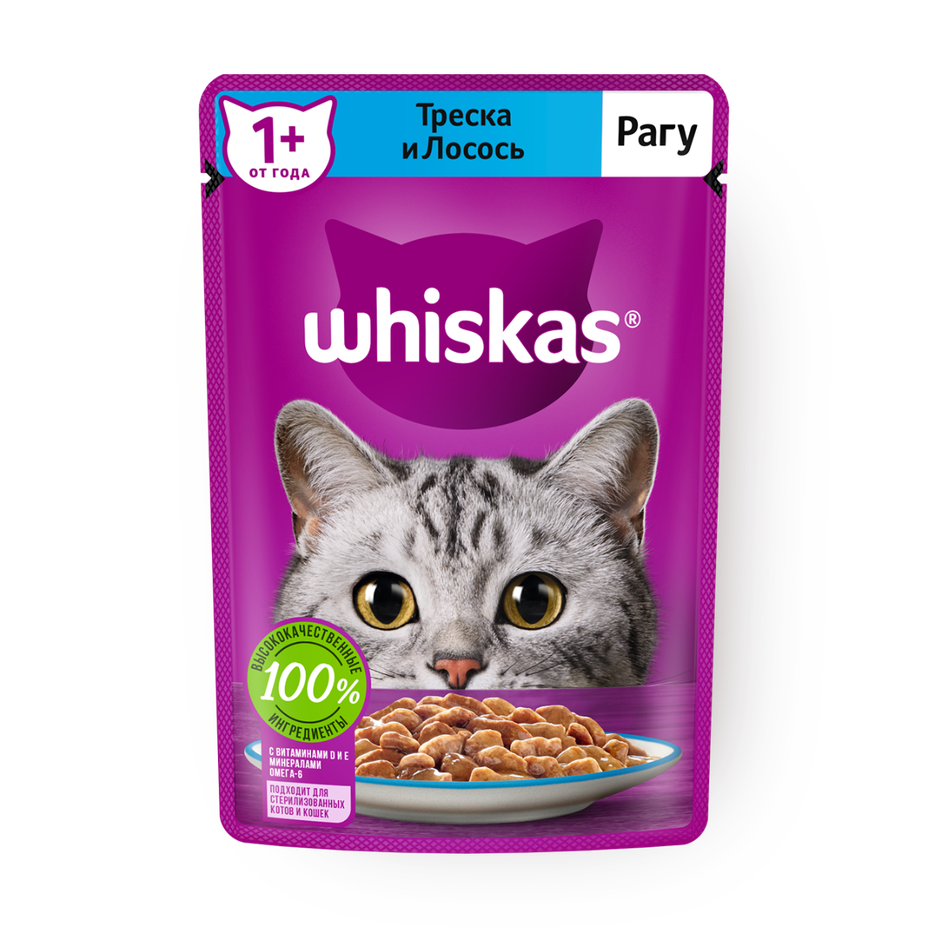 Влажный корм кошек Whiskas рагу с треской и лососем