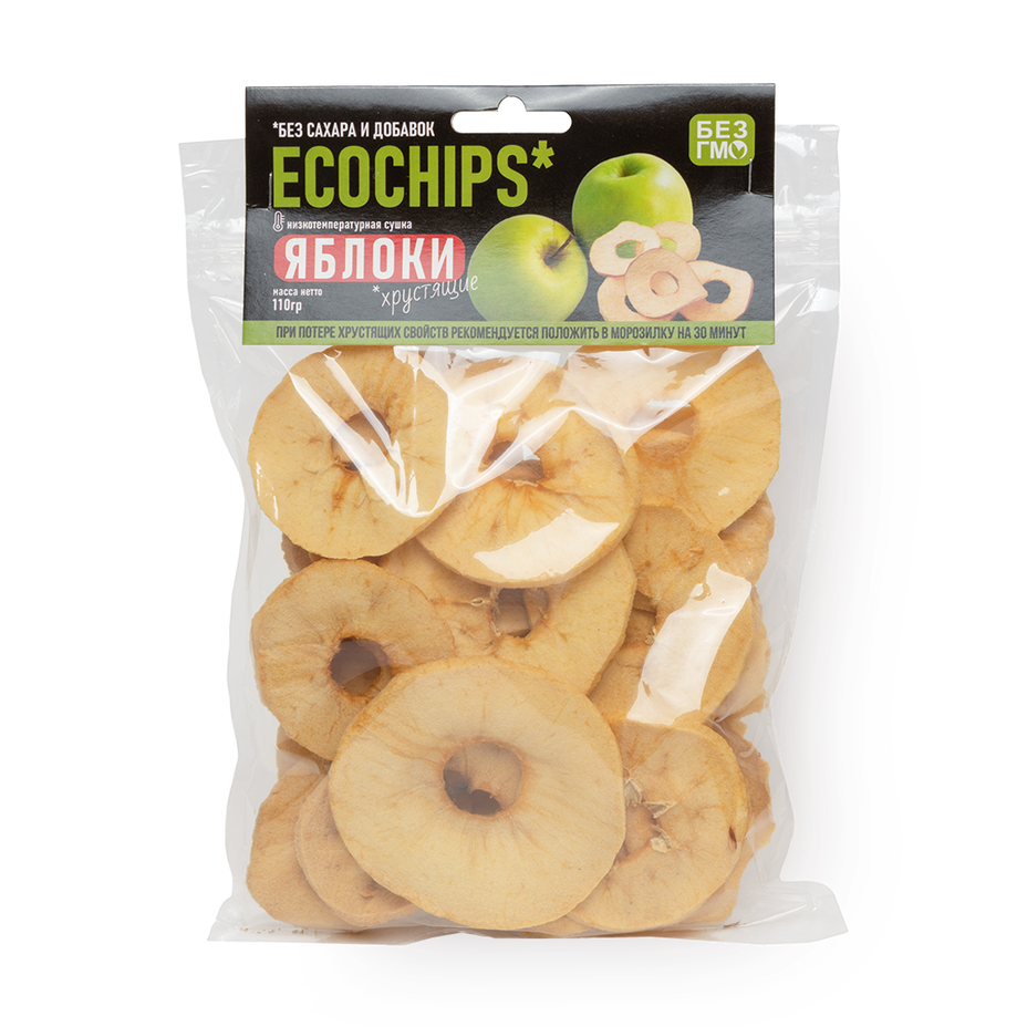Эти яблочные чипсы сделаны из очищенных долек, которые высушили до хруста. Можно взять с собой или добавить в кашу.