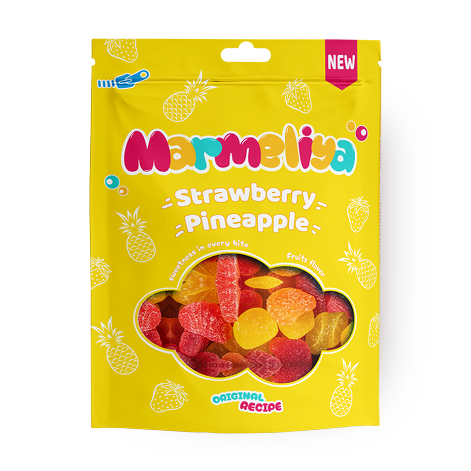 Эти жевательные конфеты сочетают вкус клубники и ананаса. Их удобно взять с собой или угостить друзей.