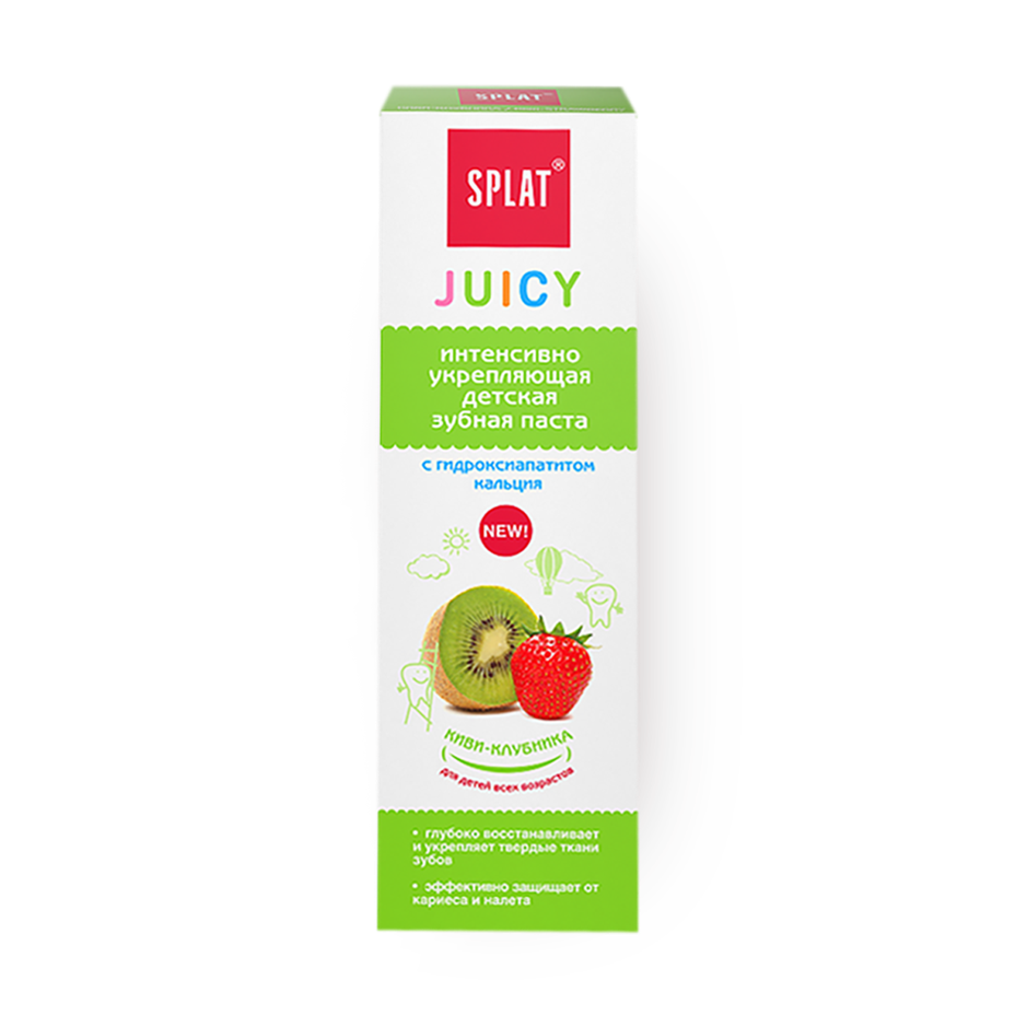 Эта паста с лёгким вкусом киви подходит для детей. Она бережно очищает зубы и освежает дыхание.