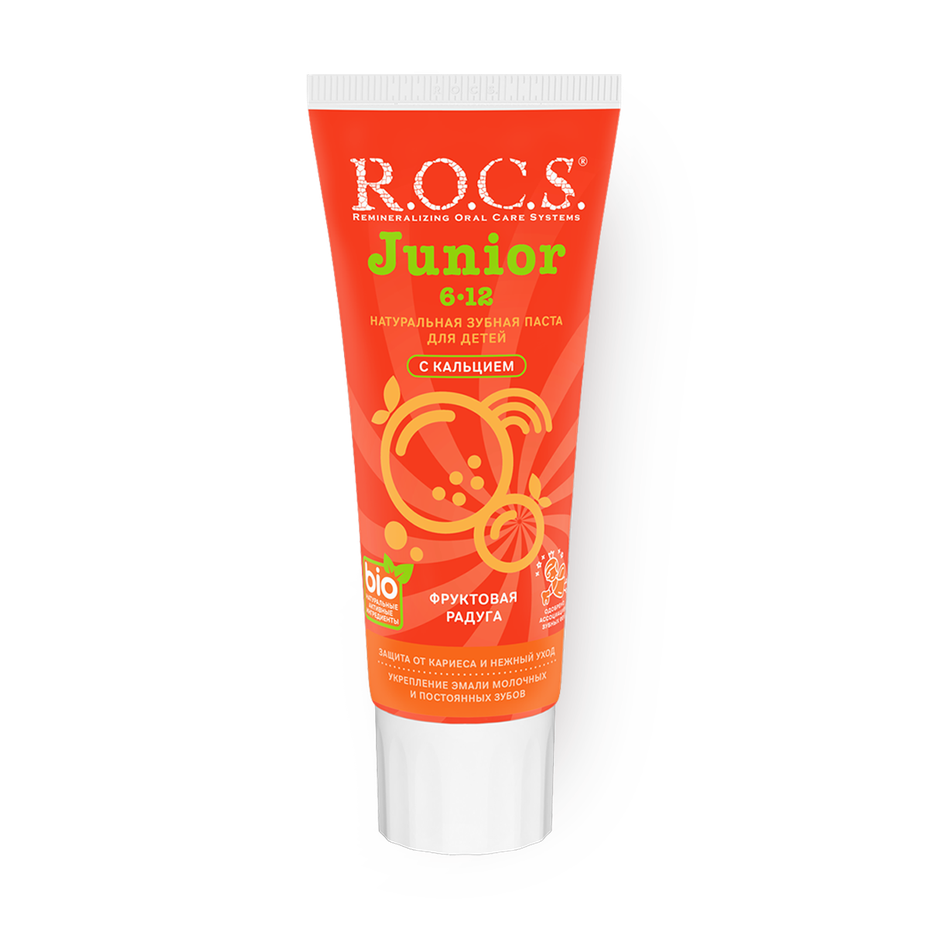 Эта зубная паста с фруктовым вкусом подходит для детей. Её можно использовать утром и вечером для бережного ухода.