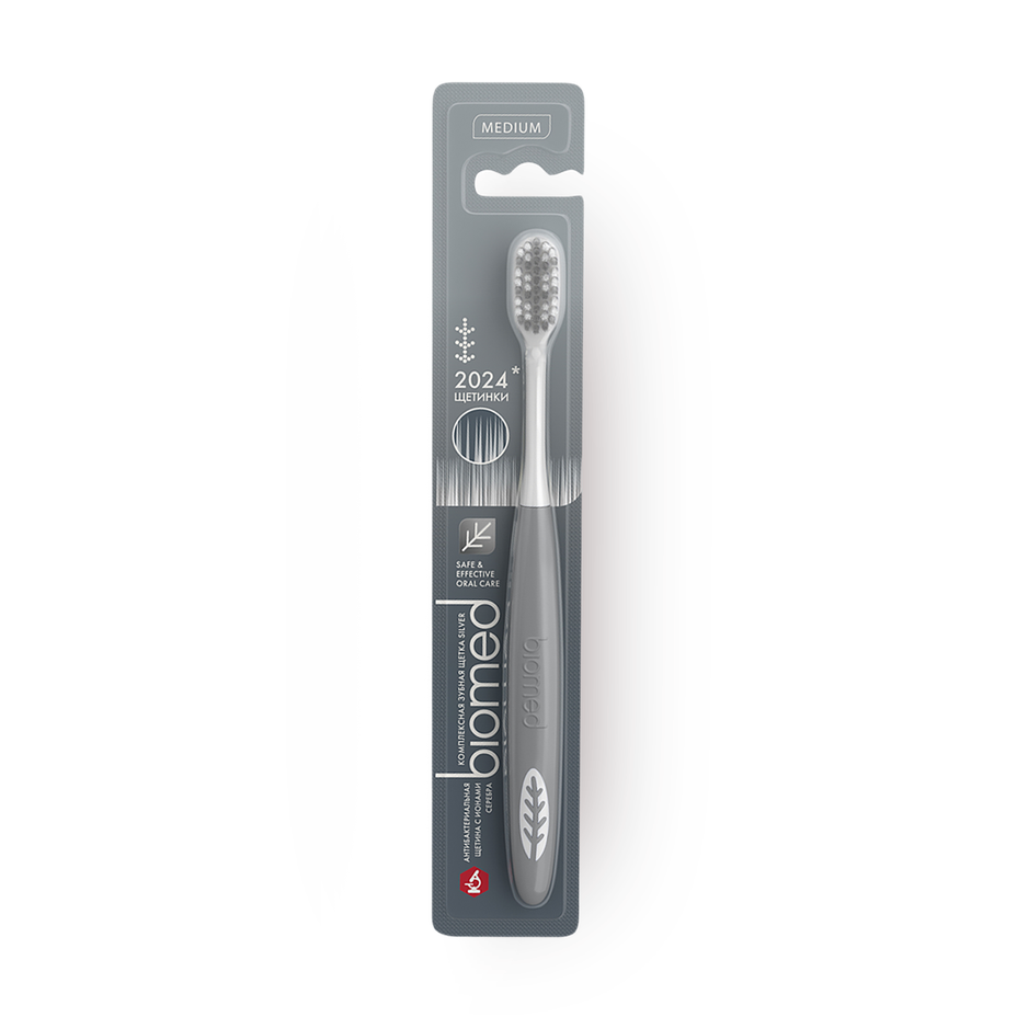Эта зубная щётка с ионами серебра имеет удобную ручку и щетинки, которые тоньше к концам. Она подойдёт для тех, кто предпочитает мягкую чистку.