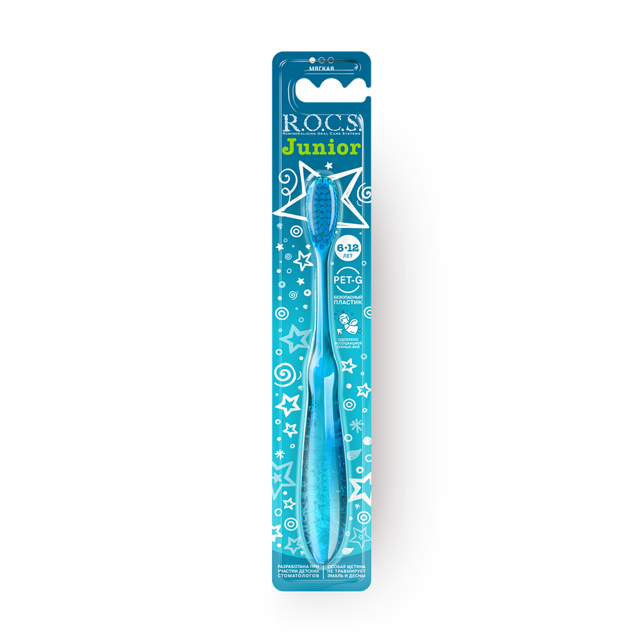 Эта щётка с мягкой щетиной подходит для детей от 6 до 12 лет. Её удобная ручка помогает ребёнку чистить зубы правильно.