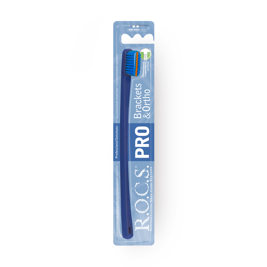 Эта щётка с мягкой щетиной подходит для ухода за брекетами и ортодонтическими конструкциями. Её удобно использовать для бережной чистки зубов.